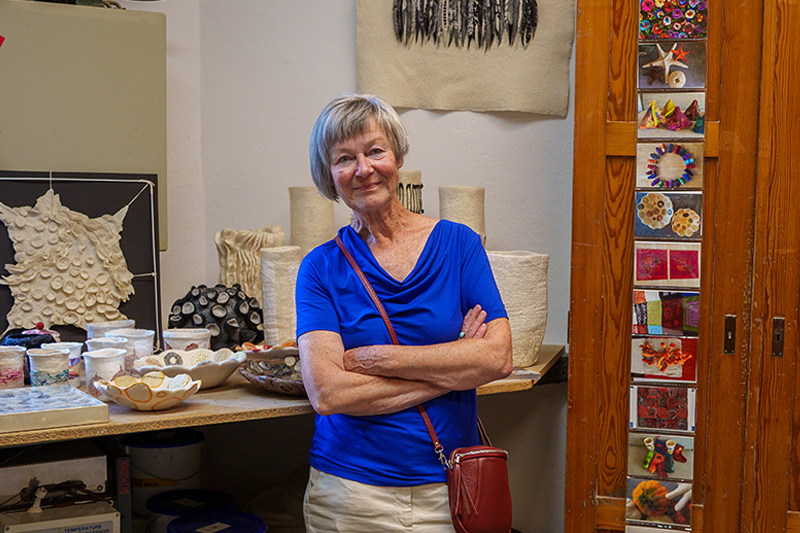 Werke von Michael Artelt (Fotografie), Kerstin Dallinga (Malerei), Hilde Janich (Pergamentschmuck), Reinhard Lemnitzer (Fotografie), Ulrike Pape (Malerei), Gudrun Quincke (Keramikobjekte), Susanne Roth (Druckgrafik), Georg Schreiber (Fotografie), Elham Vahdat (Keramikskulpturen)